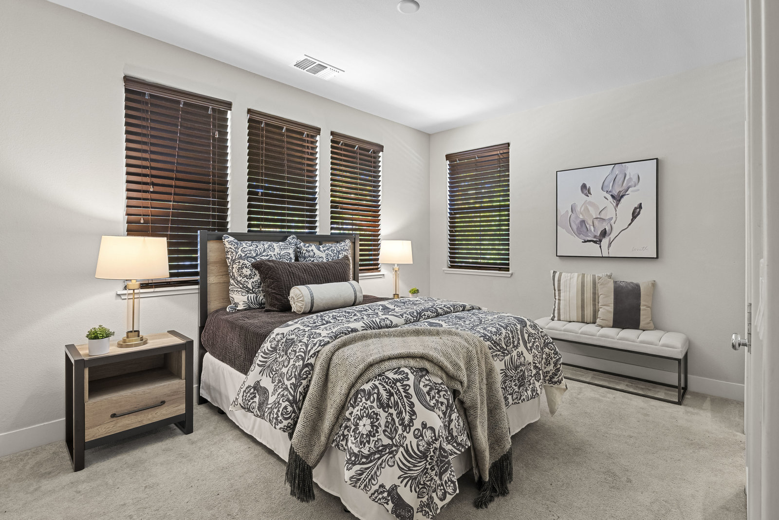 This spacious 4-bedroom, 3.5-bath home with it's soaring ceilings and elegant floorplan is located in the desirable Twin Creeks neighborhood of Gilroy, near Christopher High School! With 3,065 sq ft of living space on a 7,020 sq ft lot, this 2-story home offers comfort and convenience. The first-level bedroom with ensuite is perfect for guests or multi-gen living. The open-concept layout features a gourmet kitchen, formal dining room, the living room has 4 hardwired Sonos speakers for surround sound entertainment and a beautiful accent wall. Step outside to a stunning California room with a gas fireplace, ideal for year-round entertaining, a stamped concrete patio, a putting green and a private hot tub retreat. The luxurious primary suite boasts two walk-in closets and a spa-like ensuite bath. Additional highlights include an upstairs flex space loft area, upstairs laundry, tankless water heater, extra-deep garage, and fully owned solar. Built in 2016, this home blends indoor luxury with outdoor enjoyment. A must-see!